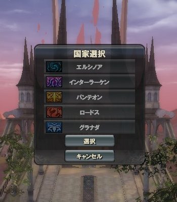 最初に所属国家を選択します、テストの時はサーバー1つで戦争専用チャンネルと2チャンネルの