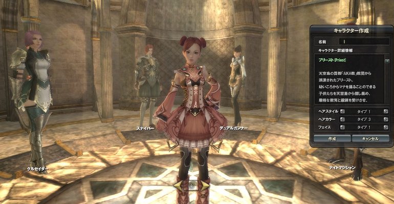 次に職業を選択します、職によって性別固定みたいです、身長は一番右のプリーストだけ小さくて