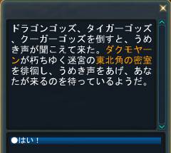 3ボスを倒すと上のメッセージが出ます、マップの右上の部屋にもやっと「ダクモヤーン」が現れます、