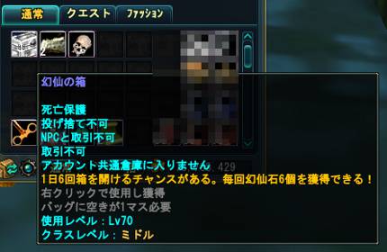 アップデートで黄昏の幻仙石のドロップがなくなって幻仙箱になってので確認してみました。